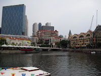 In den letzten Tagen habe ich viele neue Leute kennen gelernt und schon einiges von Singapur gesehen. Am Mittwoch habe ich zusammen mit ein paar anderen Austauschstudenten die Stadt zu Fuß erkundigt. Wir sind die meiste Zeit entlang dem Singapore River gelaufen, wo es viele Bars und Restaurants gibt. An der Mündung des Singapore Rivers besichtigten wir den "Merlion", das Wahrzeichen von Singapur. Diese Mischung aus Löwe und Fisch stellt den Schutzpatron der Stadt dar. Am Mittwochabend bin ich mit vielen anderen Leuten in den "dbl 0"-Club gegangen. Mittwochs ist hier in fast jedem Club Ladies Night. Das bedeutet, dass Frauen keinen Eintritt zahlen und dazu noch alle Getränke umsonst bekommen. Für Männer kostete der Eintritt 30 Singapore-Dollar, was ca. 15 € entspricht. Wenigstens war ein Getränk inklusive. Vor dem Club hab ich zufälligerweise jemanden getroffen, der mit mir in Karlsruhe studiert und auch gerade sei Auslandssemester in Singapur macht, allerdings an einer anderen Uni.